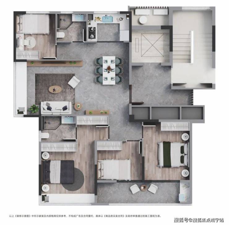 四房+朝南三卧+私享电梯厅,你很难想象在一个120㎡级的边套户型中,能将这些优点全部涵盖。