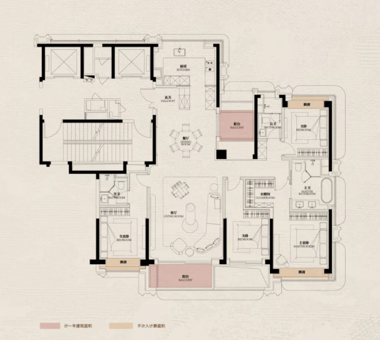 南向三房|双套房三卧室朝南,双联阳台,通透采光,多代共居各有独立私域