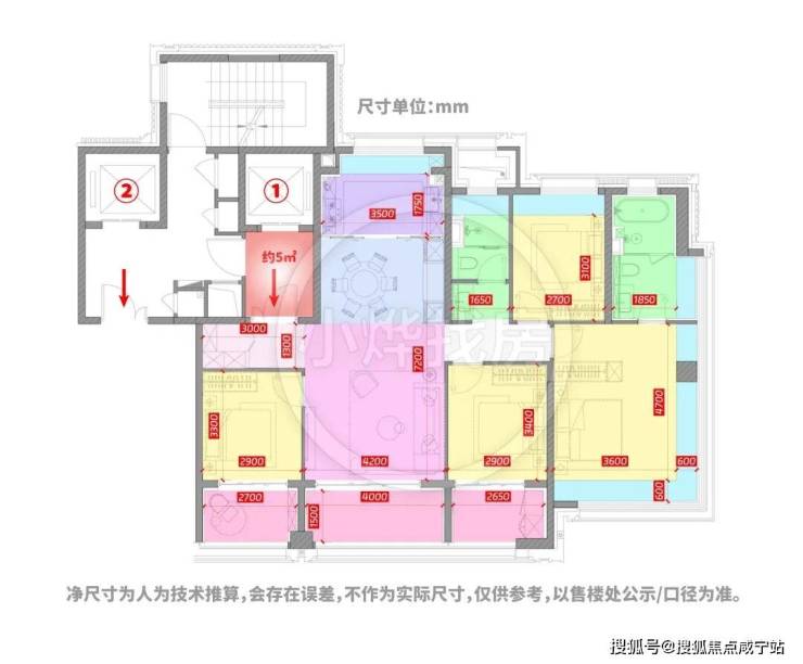 · 因为是两梯两户,有独立的电梯厅,而且边套户型这里有一个消防门,和旁边的区域直接进行隔开,相当于拥有专属归家动线,私密性非常好!这部分的空间大概5㎡左右;
