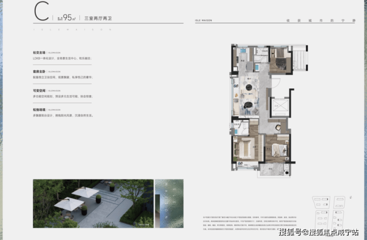 在户型设计上,朗拾花语突破“空间”壁垒,建面约92-140㎡雅藏空间,从功能性、情感性着手,将空间布局、装修方案、窗外景观以及建筑形态,融入当代青年对家居生活的真实需求,相比于改善封面140㎡,朗拾花语的95㎡户型更是以空前的性价比,被誉为梅陇的王炸户型。