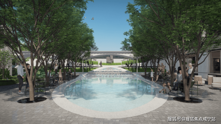 首层花园:森感公园南侧有一个休闲戏水景观,让人彷佛走到欧洲罗马的大广场一样, 气场十足。