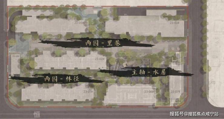 一轴:以水居记忆为轴线串联,打造多个景观节点,形成中心景观游园。