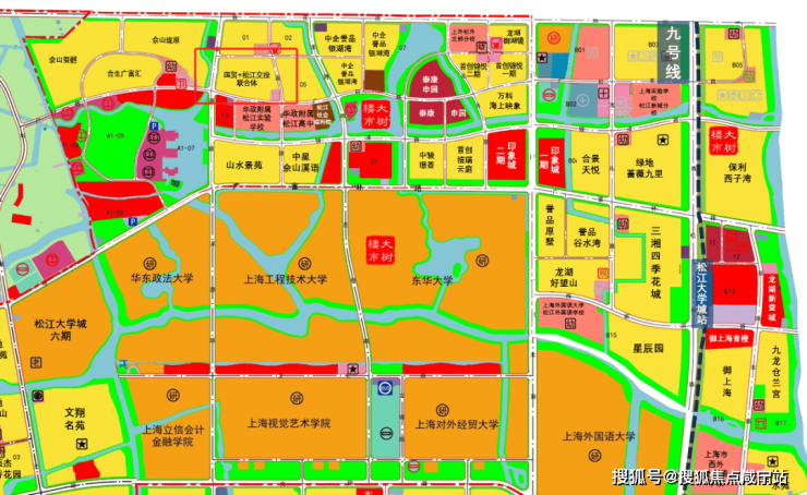 项目所在的松江大学城板块,生态资源优异,西侧一路之隔是广富林文化遗址和广富林郊野公园、直线距离约1公里是辰山植物园,北面直线距离约3公里是佘山国家森林公园和月湖雕塑公园等。