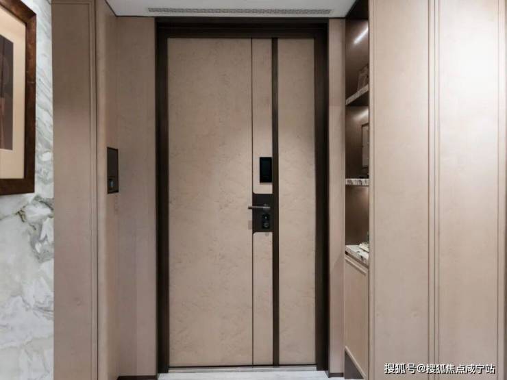 入户做了精致玄关柜,柜门为温润木饰面包裹,壁龛选用奢石映衬,质感非常棒。