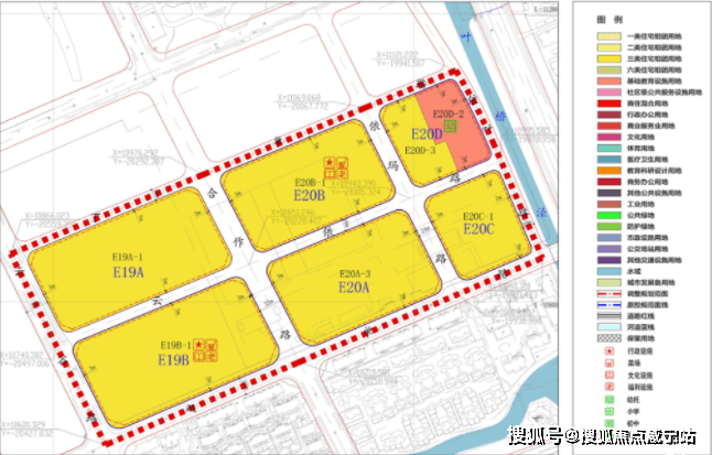 4、E20B-1地块:商业住宅用地,其中住宅占比≤89%,限高80米,住宅套数下限478套;