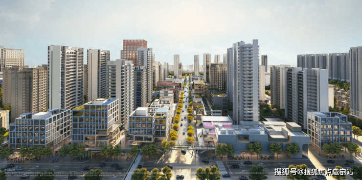 该方案利用了地块之间中央景观的空间,设置了商业街区与集中式商业,未来目测体量不小,错落穿插办公楼,形成类似于商业一条街的概念。