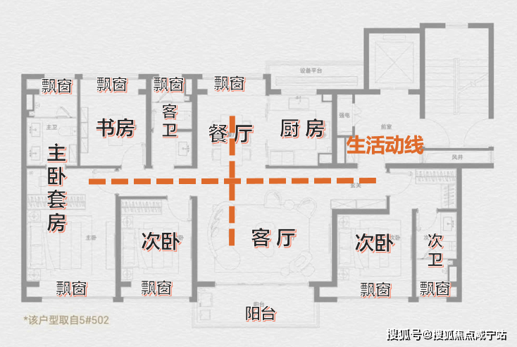 这次的户型预计都是市面上最新型的产品,多阳台+全飘窗设计,部分户型边套采用了270°转角飘窗设计,预计实际得房率可能比较有看头。