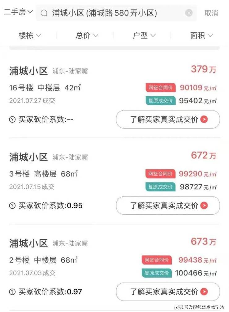 内环内浦东陆家嘴旁/世纪大道板块八佰伴对面「浦城小区」建面41-72㎡1-3房;总价235-450万 均价6.5万/㎡