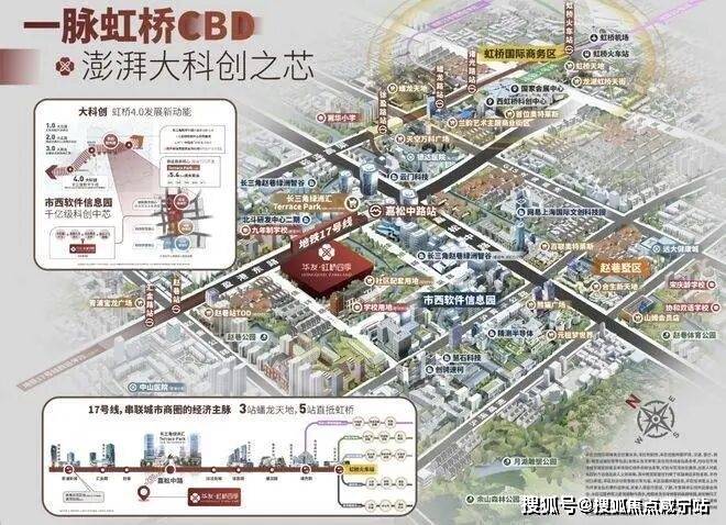 随着大虹桥科创功能西移发展的趋势,青浦新城基于“一城两翼,一带三核”发展战略目标,通过17号地铁线串联起三大核心节点,东起徐泾北斗产业基地,西到金泽华为研发基地,中部核心就是赵巷市西软件信息园,未来这条产业带上预期将会有数十万人口导入。