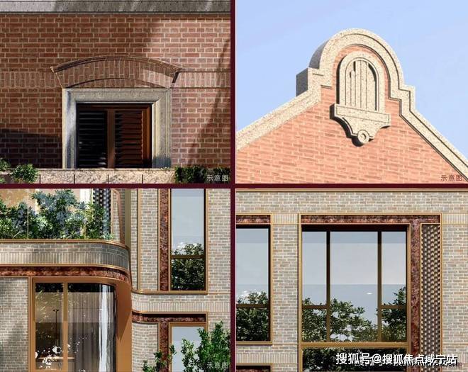 材质新生:百年红砖、釉面砖、印度进口幻彩红奢石运用,型制家族传承
