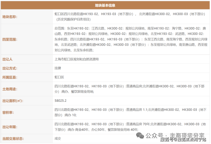 2021年2月,上海虹口城市更新建设发展有限公司(上海地产联合体)以111.35亿拿下了虹口区四川北路街道HK193-02(17街坊弘安里)、HK193-03(地下部分);北外滩街道HK300-02、HK300-03(地下部分)(历史风貌保护旧改项目)。