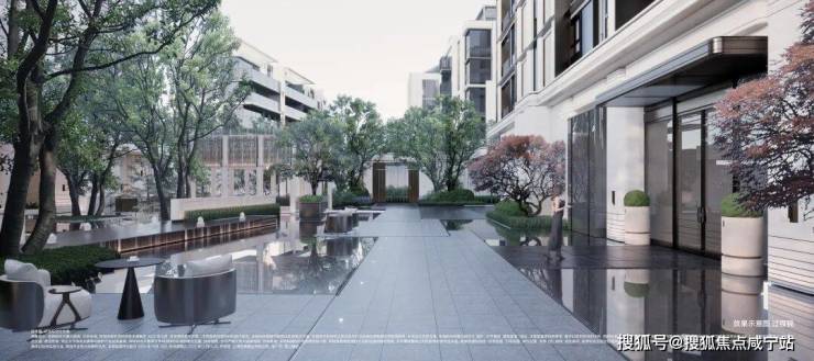 从入口处的月光米黄石材景墙,到核心区的“光影水院”水上会客厅,再到“留白水亭”,形成“仪式感→社交感”的层层递进,实现“推窗见绿、下楼入画”的沉浸式体验。