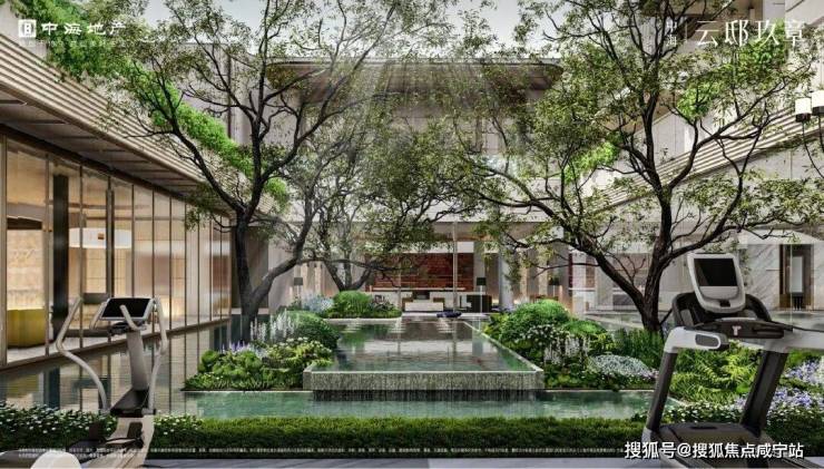 项目南区配备了一个高端会所,内含健身房,沙龙会客厅,私宴厅、恒温泳池等。恒温泳池紧邻下沉庭院,大面积落地窗设计打通了室内外的视野,中间无立柱遮挡,为家庭带来了度假式的亲子畅游体验。