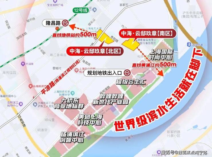 中海·云邸玖章售楼处电话:400-8800-703 距离江岸直线距离仅约500m,作为当下片区内离江最近的项目,享美团、B站、超级合生汇等地标综合体配套,杨浦滨江生活中心。