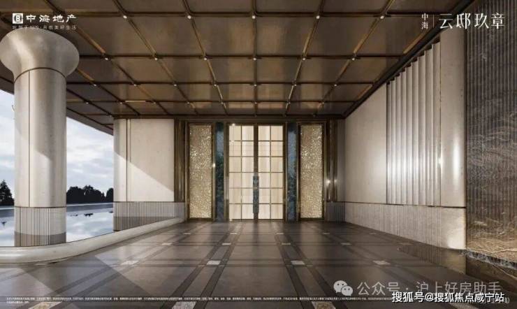 【中海·云邸玖章售楼处电话:400-8800-703】作为领邸玖章的姊妹之作,由原班团队精心打造。高级感的尽头,是“Quiet Luxury”。主入口约7米高约40米宽的奢华门头、挑高式的古铜色星空顶,地面选用天然大理石交织,进一步增强归家落客区的奢华感。社区门头两侧墙壁之上,每一盏壁灯都镶嵌着独具匠心的水波纹玻璃片,这些玻璃片宛如被岁月精心雕琢的艺术品,其表面的水波纹路细腻而自然,仿佛是潺潺流动的溪流被瞬间凝固,为整个社区门头增添了一抹温馨而又神秘的氛围。