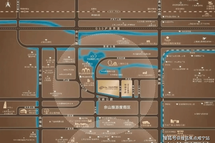 地铁 9 号线佘山站专属接驳车 10 分钟直达,60 分钟到陆家嘴,松江高铁 15 分钟联通长三角。