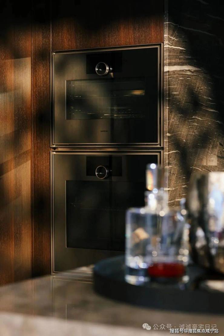 高福云境部分户型中厨橱柜选用由boffi首位艺术总监Luigi Massoni于1972年设计的经典系列,作为全球首款模块化无把手厨房系统,其轻盈的美学外观和凝练的视觉效果,重新定义了生活中的秩序与美感。同时,橱柜中采用的面板皆为Boffi系列中的最高等级用料:金属烤漆面板,呈现出深邃而低调的铜色光泽,不仅视觉高级,亦容易清洁;烟熏橡木面材,则保留最自然的山形木纹,展现出材质本真的温润质感,它们都在质感与功能之间取得双重平衡,为日常生活赋予尊贵而精致的底色。
