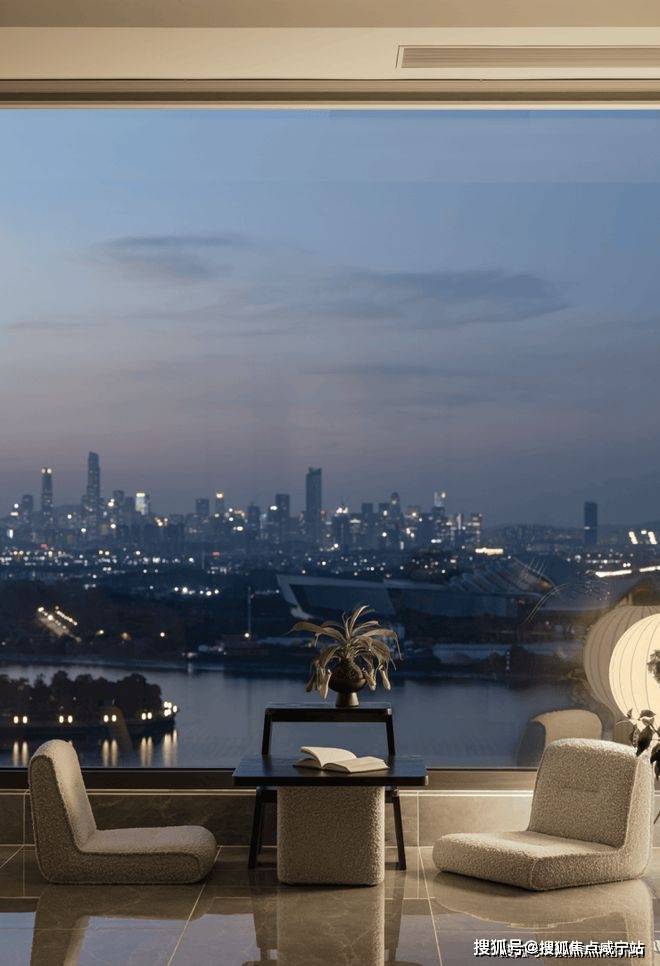 约10米南向巨幕面宽,配上270°转角全景主卧,把整个黄浦江和复兴岛都变成了家的背景。