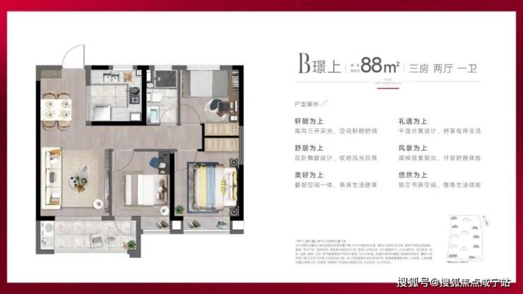 此次主推建面约88-98㎡的3房,均价仅约36232元/㎡,其中建面约88平方米的3房更是加大了占比,几乎高达6成,只为解渴一房难求的爆款。更是将实用性和舒适性做到了极致,将上系作品的基因再度夯实。