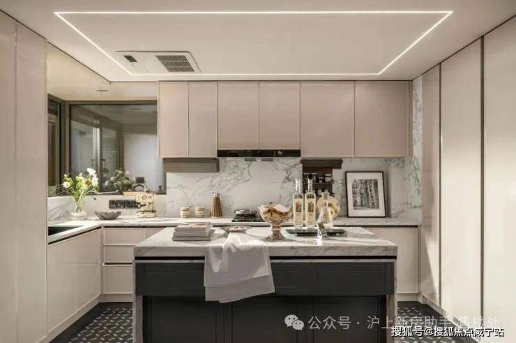 整体动静分区的格局下,U型厨房不只是烹饪场域,更因融入“社交属性”而成为家庭互动的温情角落,烹饪的同时可与客厅的家人交流。