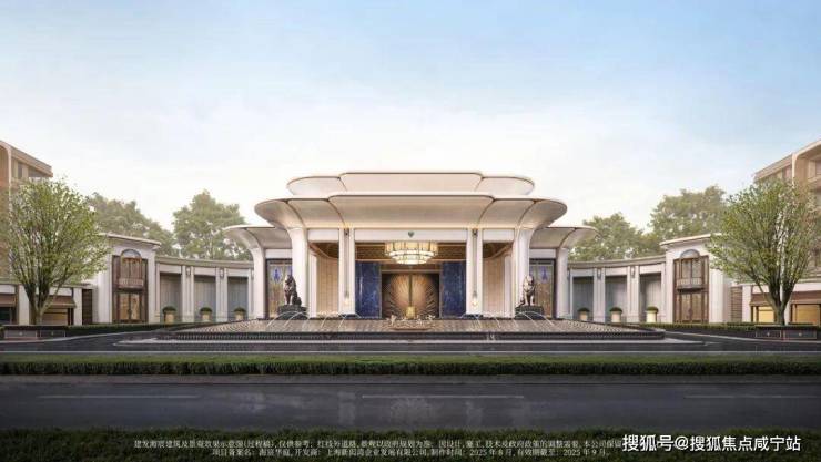 社区大门在西式建筑的表象之下,更藏有大量东方纹饰,门厅以宽65米、高13.7米白玉兰造型花冠设计,勾勒出摩登与飘逸并存的气质;环抱式落客区灵感来自意大利许愿池,由一对铜狮镇守,池底铺陈龙鳞祥纹更是含蓄传递东方祥瑞,呈现出海上梦华般松弛浪漫的归家仪式感!