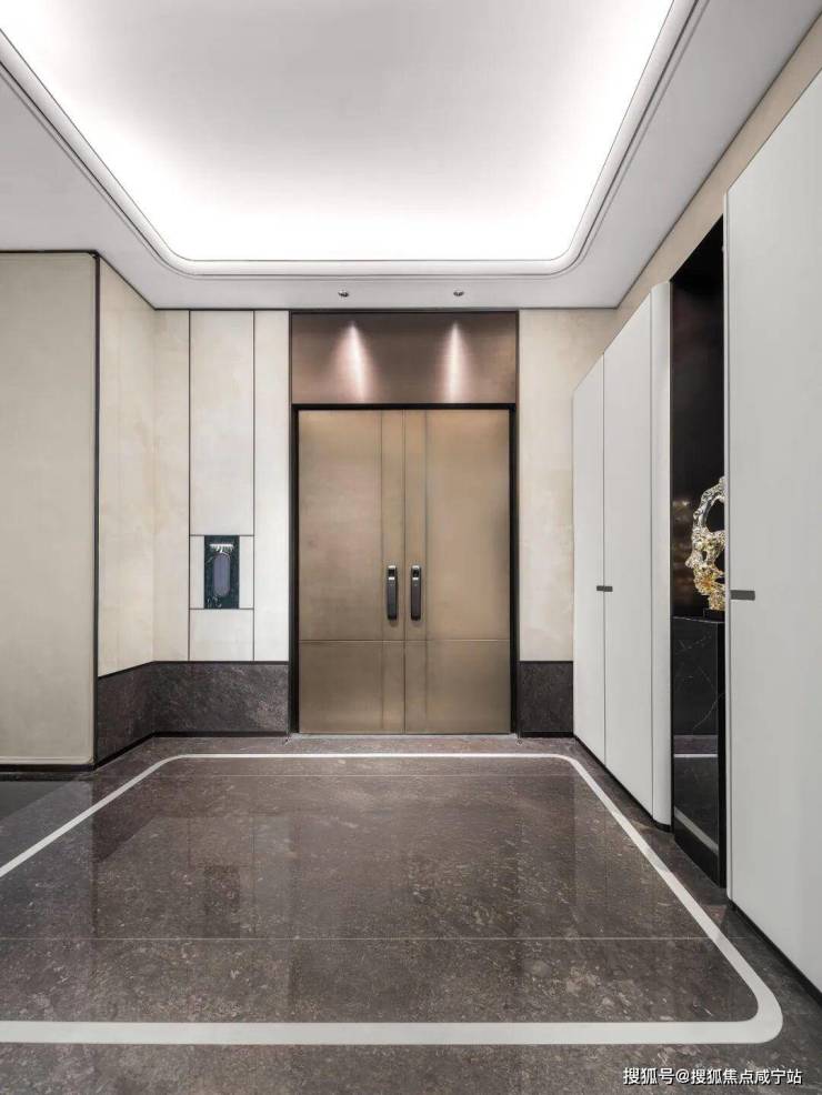 独立电梯厅面积约9m²,旁边可以做通顶收纳鞋柜,隐私性和实用性拉满,搭配双开入户大门+室内玄关背景墙,归家仪式感十足!