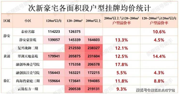 特别在政策放开之后,供应端形成了“越大越稀缺,越大越受欢迎”的全新格局!这一点,在上海豪宅的次新市场早已显现:细究上海热门板块比较典型的次新豪宅挂牌情况,我们发现,面积约200m²以上的大平层户型挂牌价,相比约200m²以内户型的挂牌价都有大约5-20%的户型溢价率!