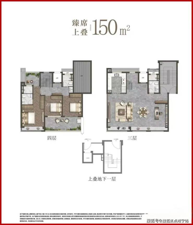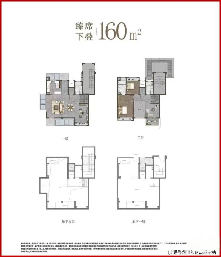 以建面约150㎡下叠户型为例:首层拥有约7.2米的横厅,与南向花园相连;二层的部分区域设计为客厅挑空,让客厅更气派,可以改造为房间增加功能性;地下室层高约5.65米,根据业主喜好设计为酒窖、健身房、SPA室,书房等。