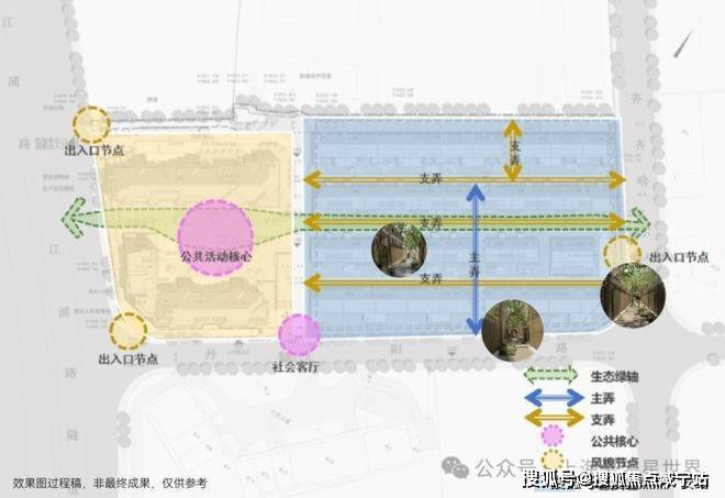 一条生态绿轴串联生态系统,一条南北主弄串联四条支弄,步移景异。