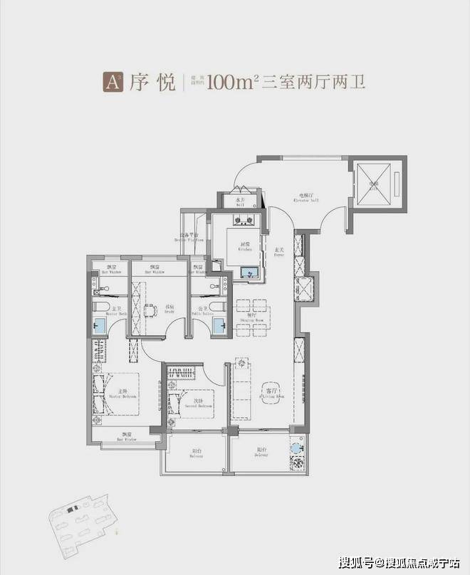 建面约115㎡3房2卫只有二期才会有