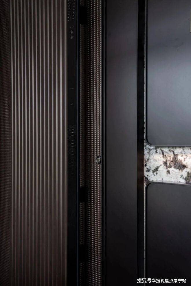 另外,项目首层通过硬朗直线呼应柔和曲线勾勒,辅以温润石材与古铜色金属线条融合,打造东西方美学共融的艺术藏品