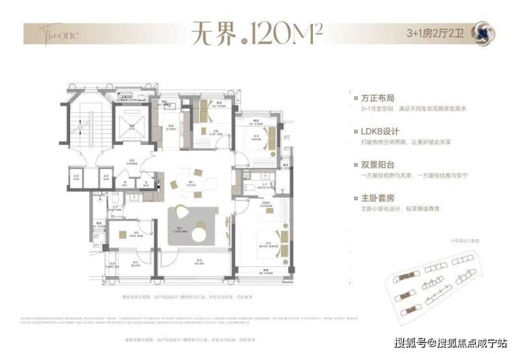 换句话说,项目在120+㎡里,通过极致的设计,做出了别人140㎡才能实现的功能空间,且实际可利用面积率接近90%+(含飘窗、阳台等)。