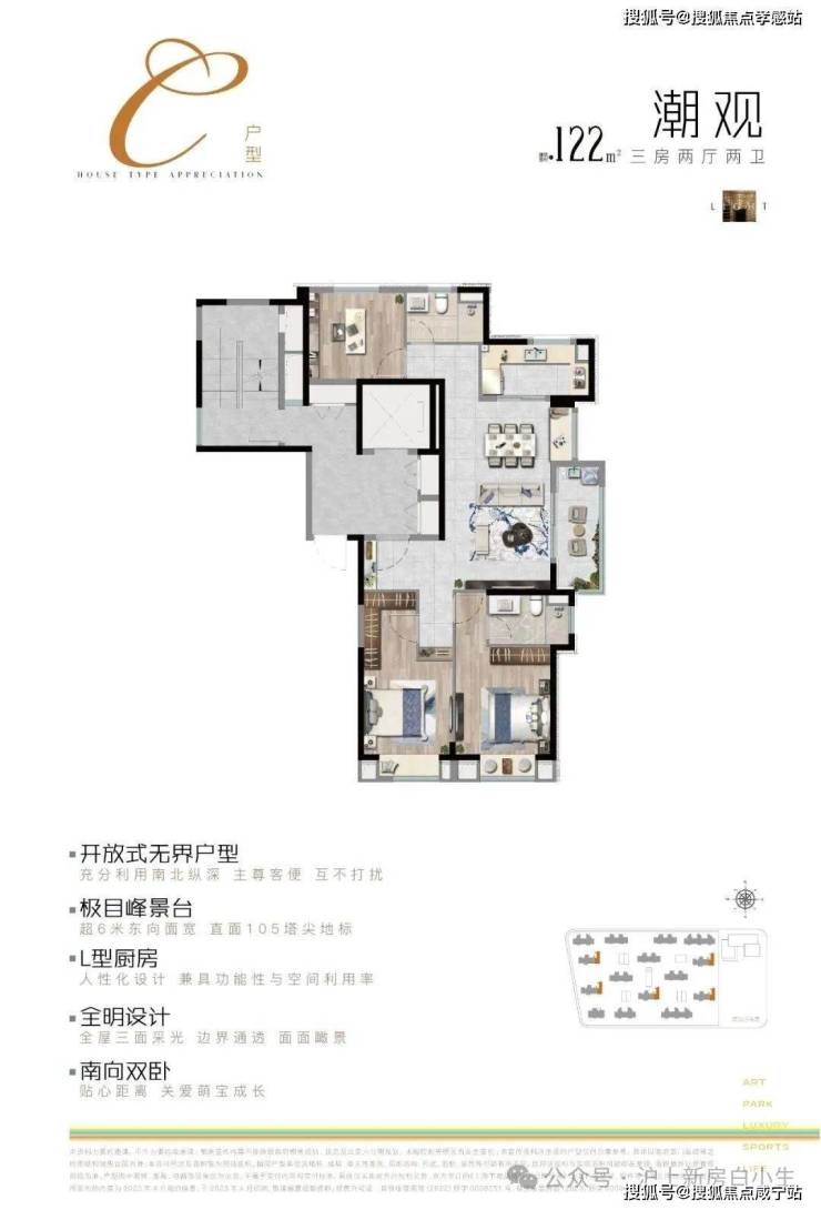 目前项目在售建面约100-122㎡3房户型,全套户型图如下: