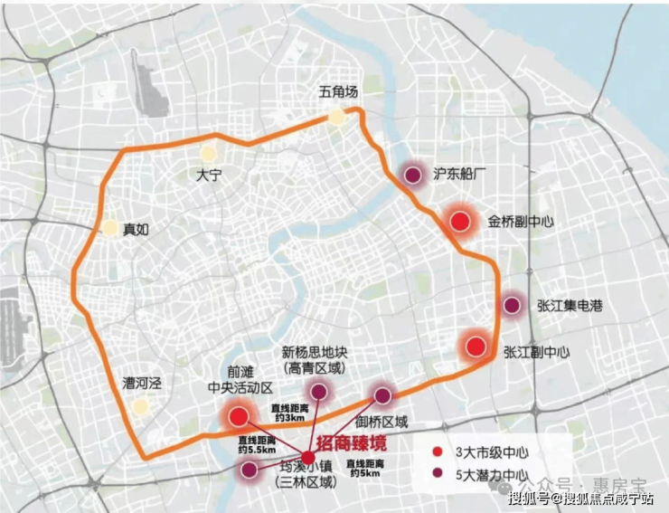 而以前滩、世博为中心,画三个直线约5-7km的生活圈,招商臻境是唯一一个约600万起的新房,而其他的选择,总价起码千万起。