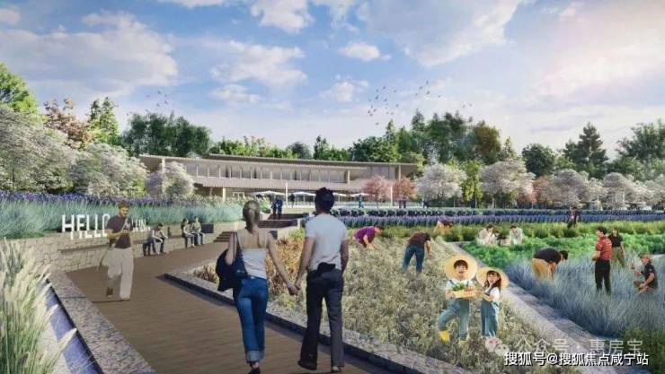 招商臻境优享一横两纵约456公顷城央公园绿廊。