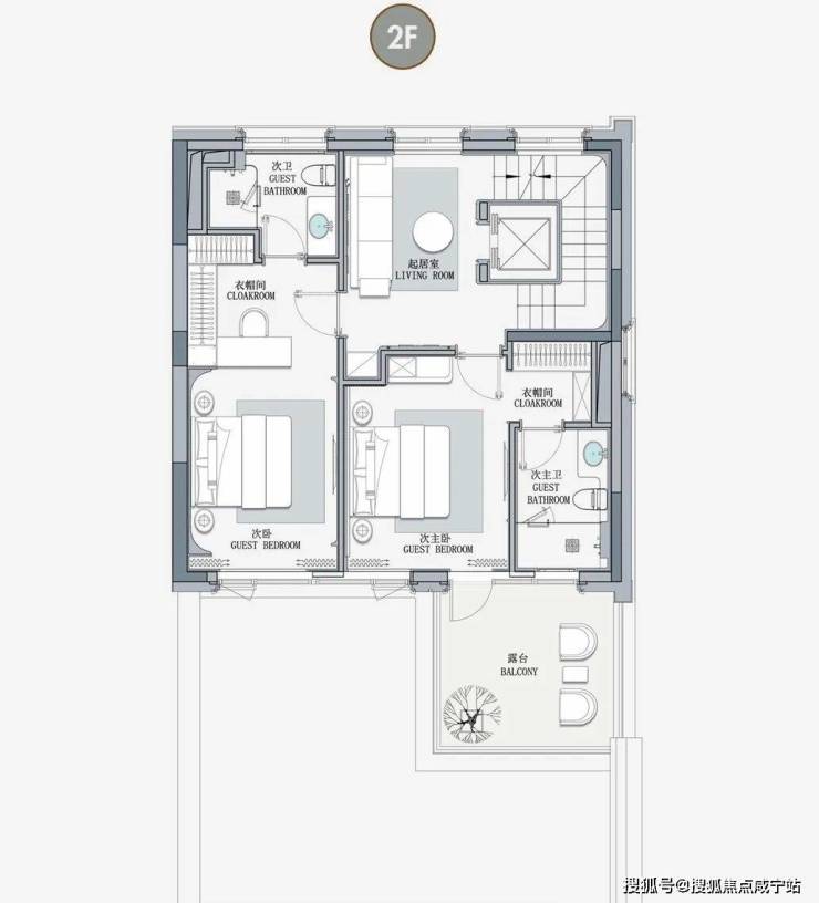 • 庭院中心布局,客厅、餐厅、卧室三面均可采光,内外相映成趣