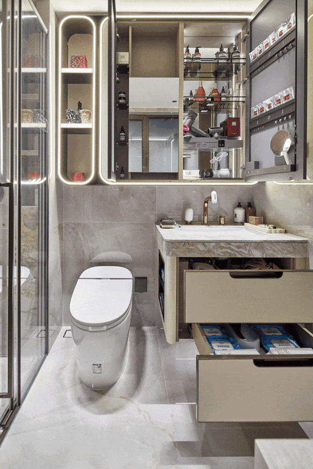 项目归家门庭采用石材,叠加铝板元素,构建出极具质感的空间和松弛氛围,令张江的归家仪式感焕然一新。