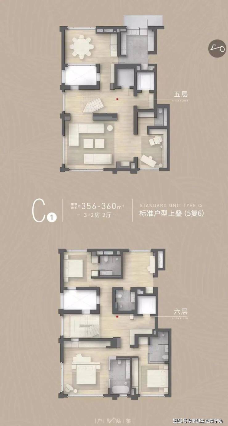 沁风雅苑主力户型为约310-360㎡叠墅(1复2,3复4,5复6,共6层),五房两厅五卫。