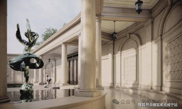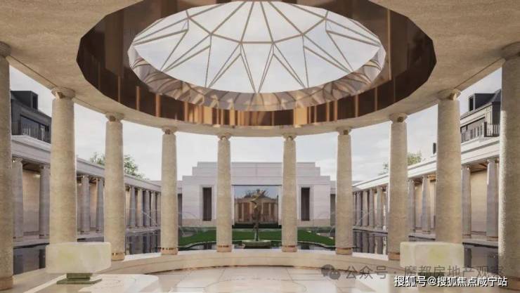 东门的归家体验同样尊崇感满满:32米的归家门楣下,14根多立克柱式呈弧形列阵,其环抱式布局源自古典建筑的“迎宾礼仪”,让每一位业主都能感受到宾至如归的庄重。