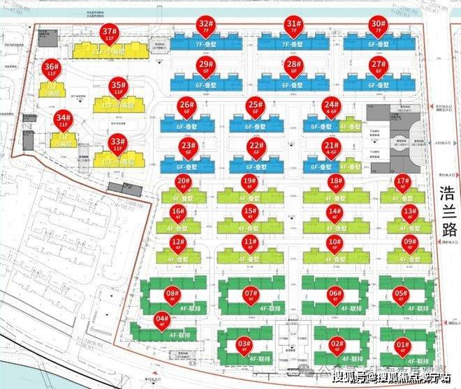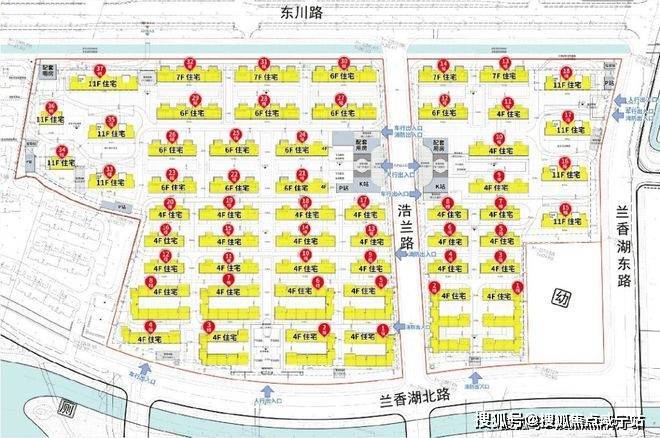 03-04地块:东至兰香湖东路,南至兰香湖北路,西至浩兰路,北至东川路,土地用途普通商品房,容积率1.01;由4幢11F高层住宅、14幢4-7F多层住宅以及若干社区配套用房组成,共计规划约342套可售住宅;