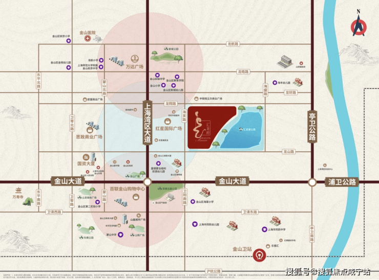 医疗方面:项目西北侧约2.2km为金山医院,这是一所三级综合医院,对于板块来说能级尚可。