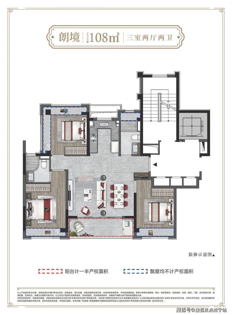 建面约108㎡的三室两厅两卫户型,餐客一体化横厅连通大面宽瞰景阳台,营造出贯通感、流动感十足的光幕美学场域。双面采光的观景北卧,以环幕视野的广阔,把对自然的偏爱和视野的宠爱全部给予居住者。