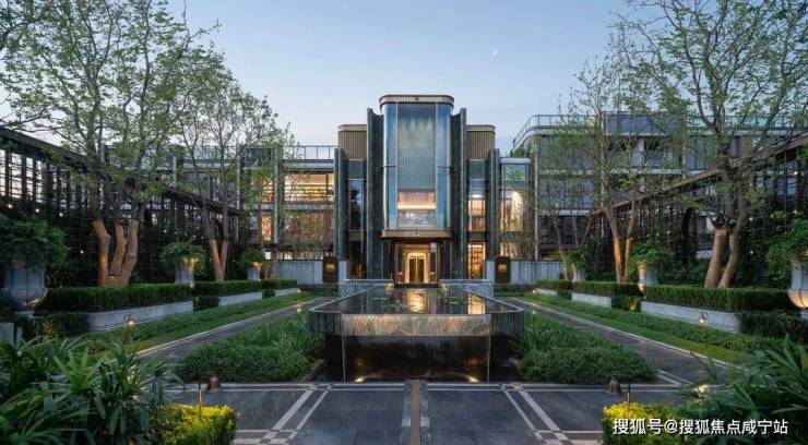 项目的建筑立面:巴西进口亚马逊绿奢石、弧角玻璃和铝板,这样颠覆性的组合在外环别墅项目中,可以说是非常少见的存在