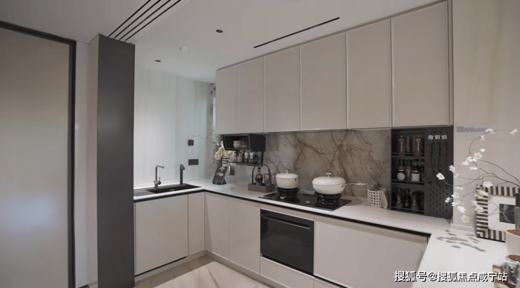 厨房配置再度升级:除岩板岛台与全套方太高端厨电外,更注重实用细节,加深的飘窗柜台面,提供额外的操作与储物空间。