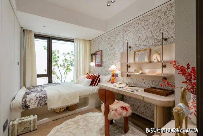 豪华的套房设计,北侧卫浴飘窗+南向床边双飘窗的设计,更是把这个空间的视野和收纳空间延展开来,尺度感真的很惊人。