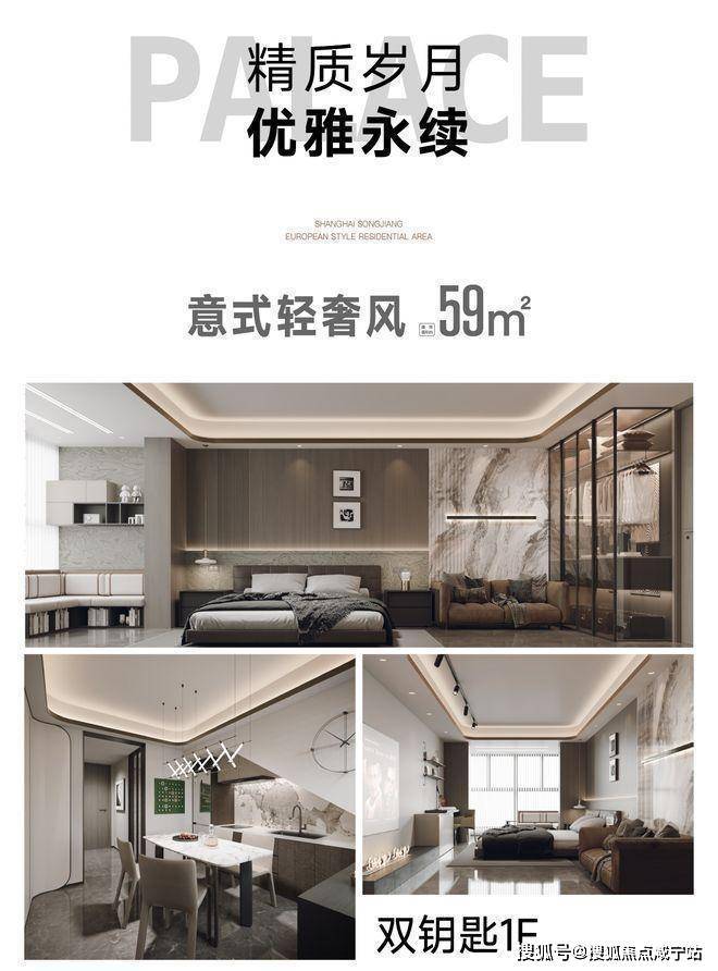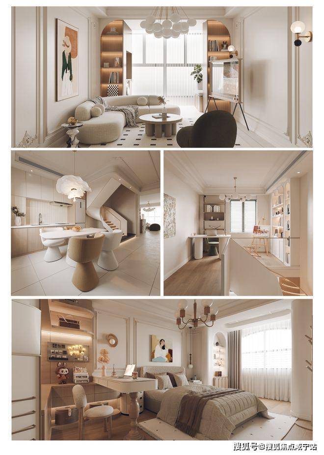 走进松江佘山瑞景公馆公寓的样板间,5.4米的层高瞬间颠覆传统公寓的压抑感。以59㎡法式奶油风户型为例,下层采用开放式客餐厨一体化设计,3.6米的挑高空间搭配全景落地窗,阳光肆意倾泻;上层通过钢结构隔层打造出独立卧室与书房,动静分区科学合理。这种“买一层得两层”的空间利用效率,让52-68㎡的小户型也能实现三房功能,满足从单身贵族到三口之家的全生命周期需求。