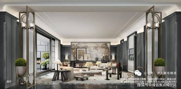 弘安里售楼处电话:400-8800-703☎️☎️建筑面积约495㎡传家大宅,海派气质内外辉映;深色木饰面与柔和的刺绣主背景,框定空间层次格局,营造稳当厚重的氛围基调,法式留白的墙面与顶部造型,与原筑提取的典型拼花地砖相呼应,经典的精致与典雅,海派传家大宅的气度不言而明。