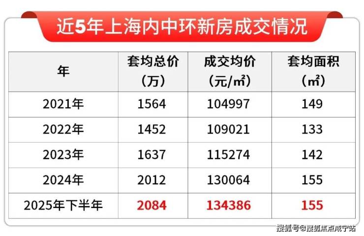 具体看数据,截止今年下半年上海内中环新房的成交均价约13.4万/㎡,套均面积155㎡,套均总价高达2084万!