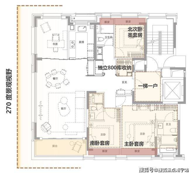首先,同样一梯一户的体验,就已经比目前市场上绝大多数刚需三房产品高上一截。