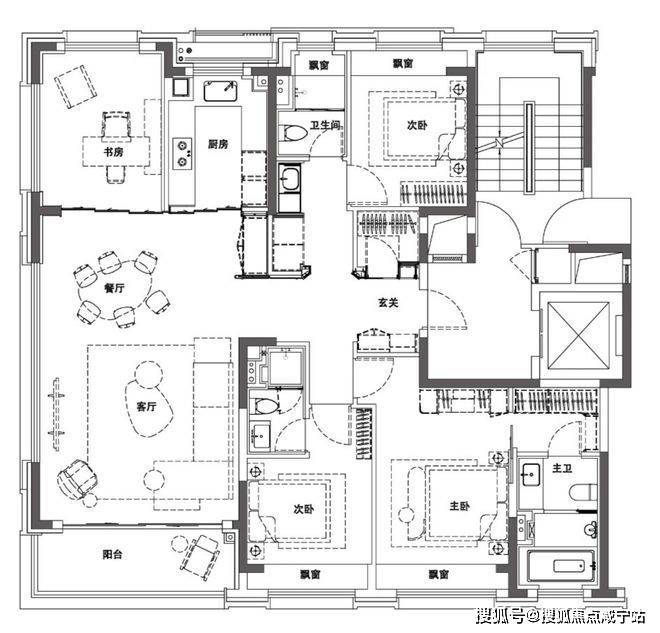 南次卧同样为套房设计,满飘窗扩展视觉体验;